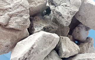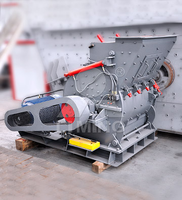 方解石大塊物料經破碎機破碎到能進入磨粉機的入料細度(15mm-50mm)。