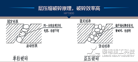 · 采用層壓縮破碎原理設計,使破碎發(fā)生在物料和物料之間,破碎效率高,粒型優(yōu)異,是生產(chǎn)骨料的伴侶;