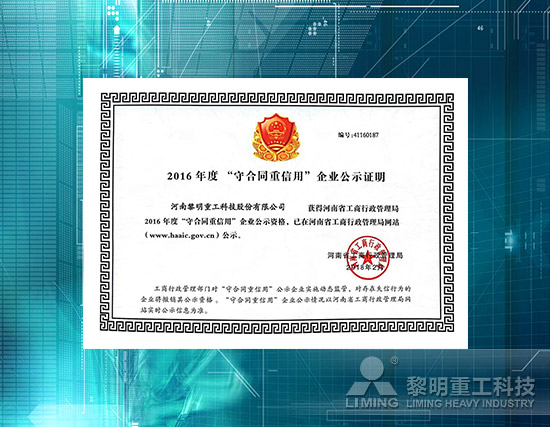 近日,河南省工商行政管理局對2016年度“守合同重信用企業”進行公示,黎明重工憑借在經營、管理、納稅等方面的表現力和良好的企業影響力,獲此殊榮。