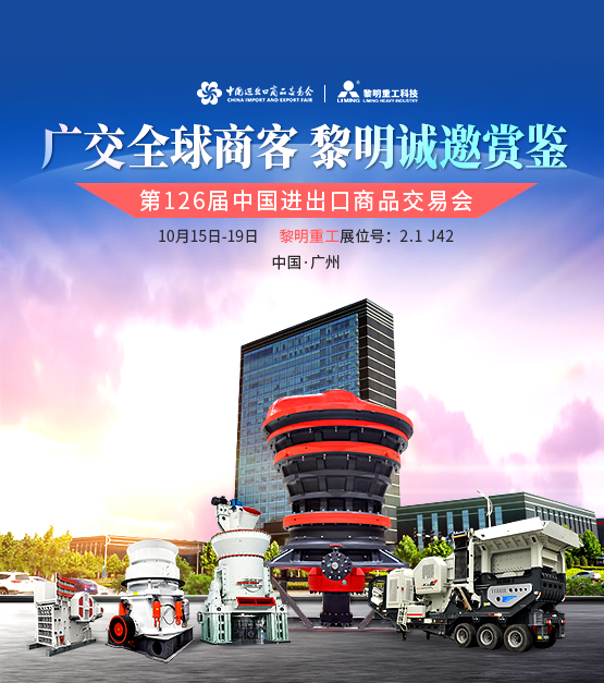10月15日-19日,第126屆中國進出口商品交易會將在廣州舉行,展覽面積約118.5萬平方米,包含約6萬余展位。屆時,黎明重工將在2.1 J42展位,誠邀全球商客前往賞鑒。