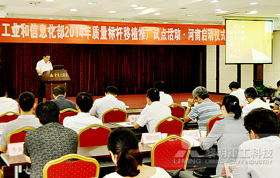 8月11日,2014年工業企業質量標桿移植推廣試點活動在河南省鄭州市正式啟動,河南省成為全國行動的省份。集團公司生產中心負責人作為試點單位代表上臺發言,黎明重工成為河南省(全國)接受由知名專家組成的“質量診斷團隊”現場把脈問診的試點企業。據悉,本次質量標桿移植推廣活動河南省共有17家企業入圍。