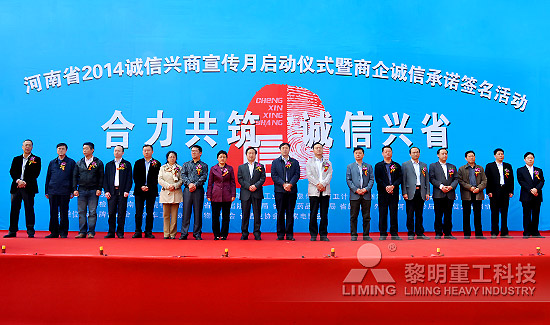 近日,黎明重工受邀參加“河南省2014誠信興商宣傳月”啟動儀式暨商企誠信承諾簽名活動。在河南省各廳局領導、各誠信經營示范單位和誠信企業(yè)家代表、新聞媒體記者等現場簽名與誠信宣言的見證下,黎明重工與300余人一起,正式開啟了宣傳月的誠信之旅。