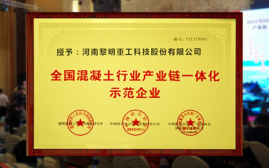 黎明重工獲“全國混凝土行業(yè)產(chǎn)業(yè)鏈一體化示范企業(yè)”殊榮